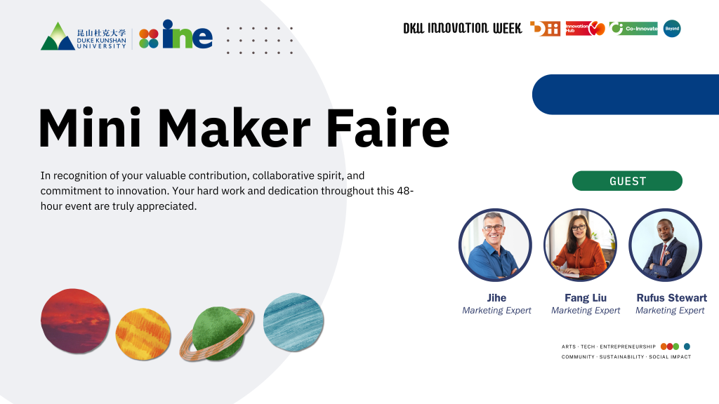 Innovation Week is designed to bring together DKU’s existing innovation resources and showcase, over the course of one week, the complete innovation journey of DKU students—from idea generation and project development to real-world implementation. The event aims to enhance the visibility, impact, and cross-campus synergy of student-driven innovation initiatives.